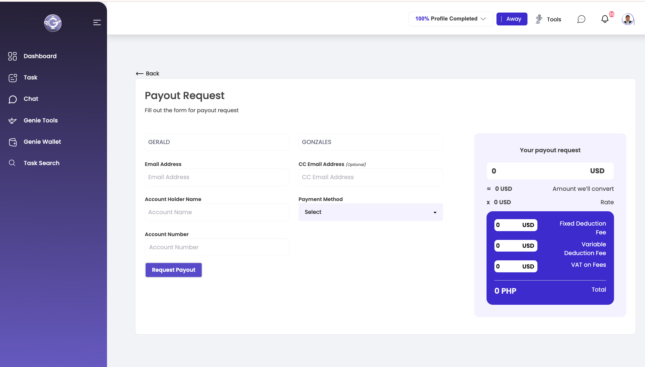 Once you’ve completed your task and the 7-day holding period has passed, you can request your payout directly from your dashboard.