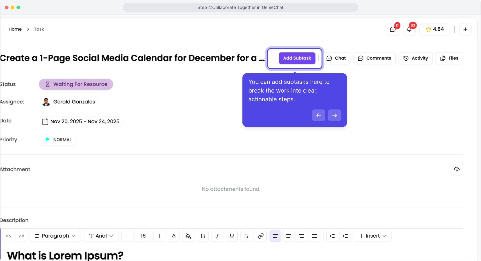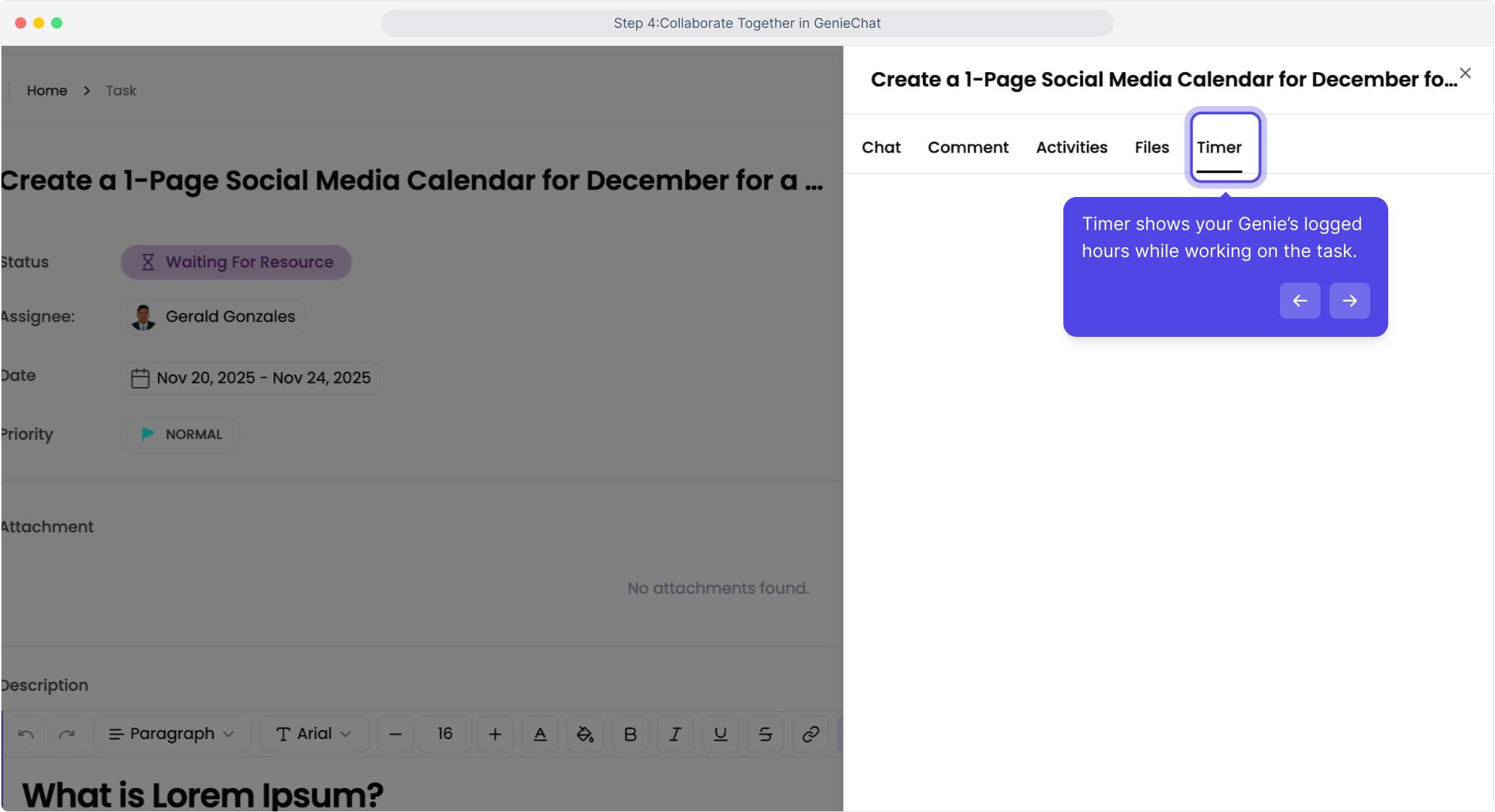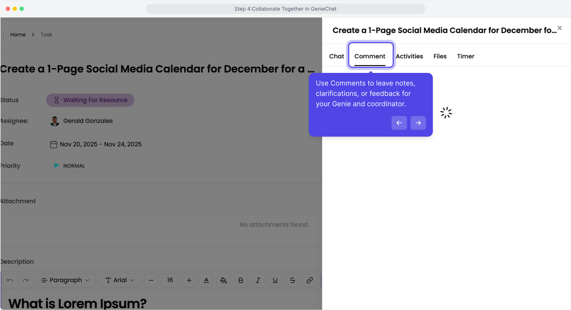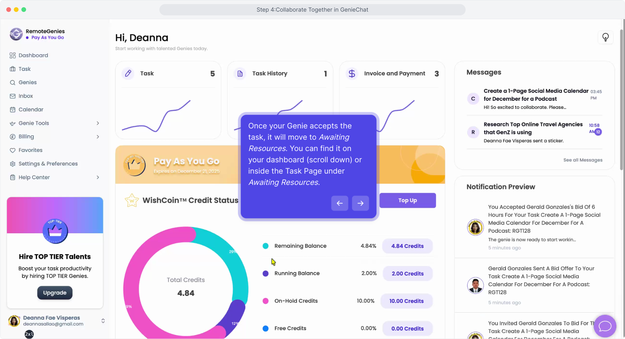 Once your Genie accepts the task, the status automatically changes to Waiting For Resource.