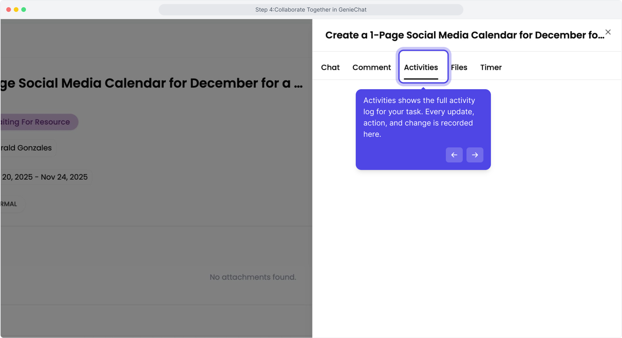 The Files tab is where you and your Genie can upload and access all documents related to the task.