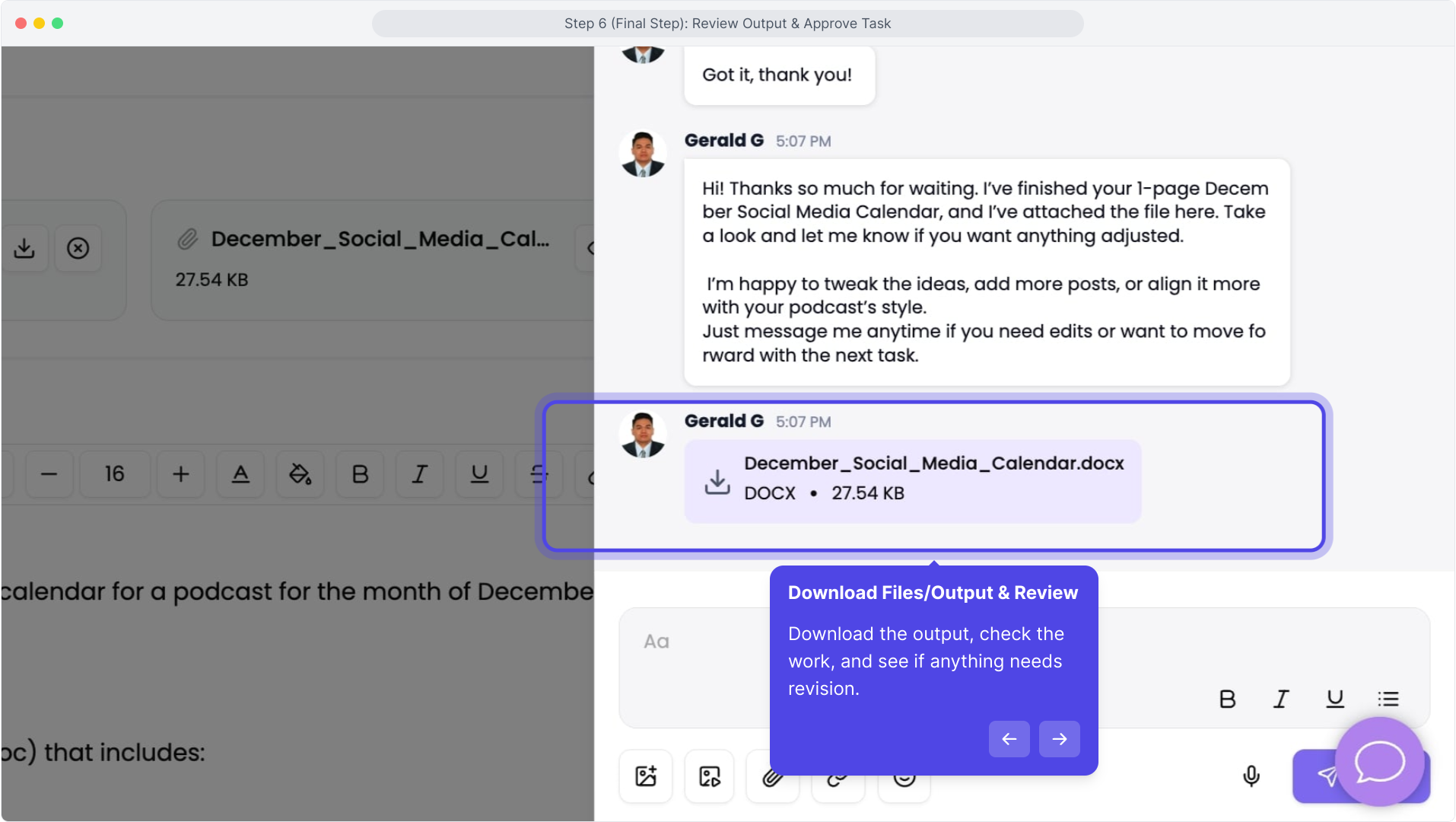 Step 6 (Final Step): Review Output & Approve Task